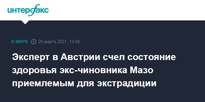Эксперт в Австрии счел состояние здоровья экс-чиновника Мазо приемлемым для экстрадиции