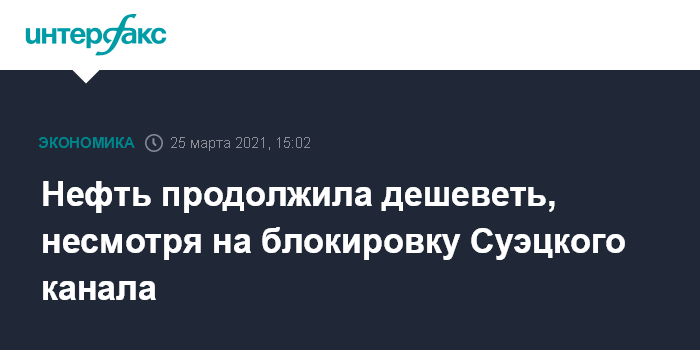 Нефть продолжила дешеветь, несмотря на блокировку Суэцкого канала