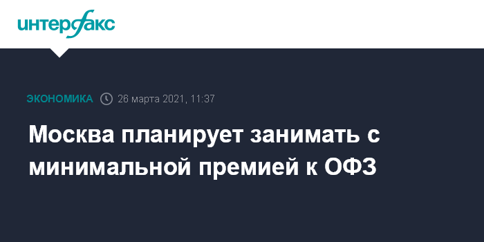 "Правительство Москвы выйдет на рынок субфедерального долга только на выгодных для себя условиях. Мы внимательно следим за показателями долгового рынка. Москва финансирует через займы проекты развития города, все текущие расходы покрываются собственными доходами. Поэтому мы планируем размещать облигации с минимальной премией к ОФЗ, и готовы при необходимости корректировать сроки выпуска бумаг", - сказал Ефимов, чьи слова приводит пресс-служба комплекса экономической политики и имущественно-земельных отношений правительства Москвы, на встрече с участниками финрынка.