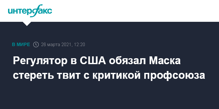 Регулятор в США обязал Маска стереть твит с критикой профсоюза