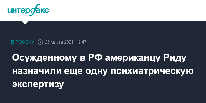 Ранее Мосгорсуд уже назначал аналогичную экспертизу в отношении Рида, однако она проводилась в амбулаторных, а не стационарных условиях. О ее результатах официально пока не сообщалось.