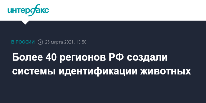 Москва. 26 марта. INTERFAX.RU - Более 40 регионов РФ создали системы идентификации животных, сообщил журналистам замминистра сельского хозяйства Максим Увайдов в Уфе в пятницу.