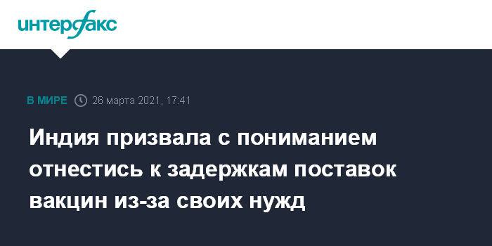 Ранее европейские СМИ сообщили со ссылкой на Глобальный альянс по вакцинам и иммунизации (GAVI), что экспорт вакцины от COVID-19 Индией в бедные страны в рамках международной вакцинационной программы COVAX задерживается из-за повышенного спроса на препарат в самой Индии. Представитель GAVI отмечал, что власти Индии не торопятся с выдачей экспортных лицензий на вакцину, которую должны отправить в марте и апреле.