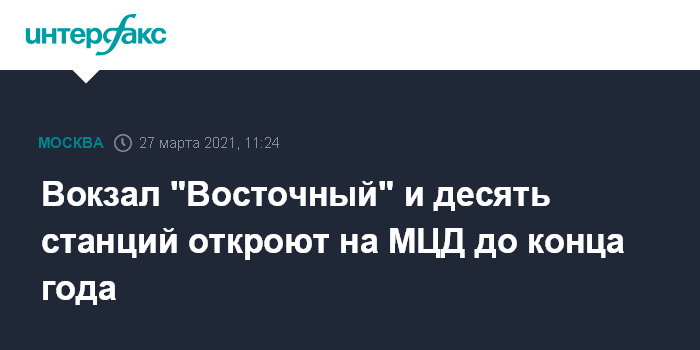 Москва. 27 марта. INTERFAX.RU - На маршрутах Московских центральных диаметров (МЦД) до конца 2021 года планируется завершить реконструкцию и строительство вокзала "Восточный" в районе Черкизово и десяти станций, сообщил журналистам в субботу заммэра столицы по вопросам градостроительной политики и строительства Андрей Бочкарев.