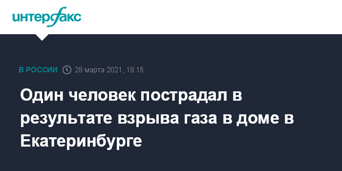 Москва. 28 марта. INTERFAX.RU - Один человек пострадал при взрыве газа в Екатеринбурге, сообщили журналистам в пресс-службе МЧС РФ.