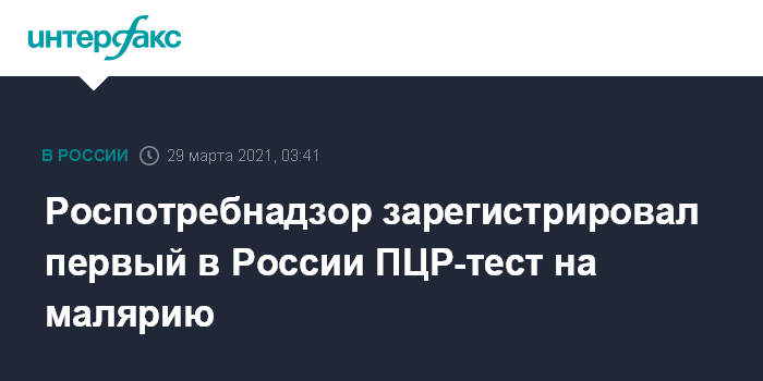 Москва. 29 марта. INTERFAX.RU - Центральный научно-исследовательский институт Эпидемиологии Роспотребнадзора разработал и зарегистрировал первый в Российской Федерации ПЦР-тест для диагностики малярии, сообщается в понедельник на сайте ведомства.