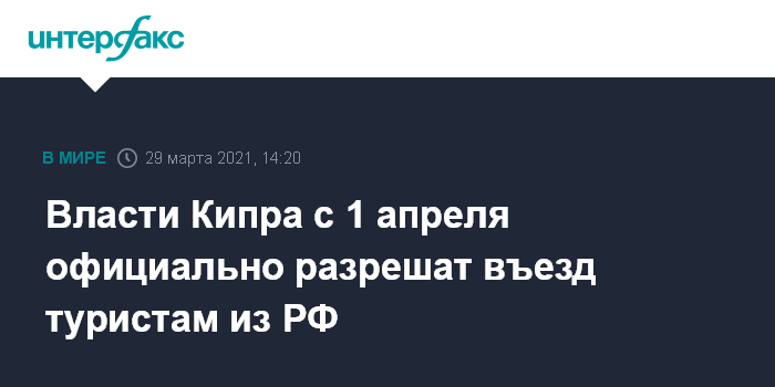 "Правительство Кипра с 1 апреля внесет Россию в список стран из "красной категории", - сказал он.