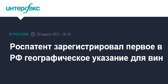 Роспатент зарегистрировал первое в РФ географическое указание для вин
