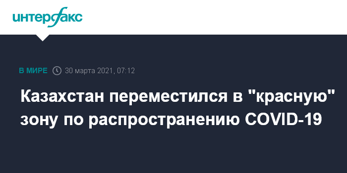 Москва. 30 марта. INTERFAX.RU - Казахстан во вторник переместился из зоны умеренного риска ("желтая" зона) по распространению COVID-19 в зону высокого ("красная"), сообщила межведомственная комиссия (МВК) по нераспространению COVID-19.