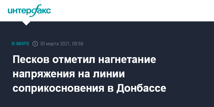 Москва. 30 марта. INTERFAX.RU - Россия искренне рассчитывает на то, что нагнетающееся напряжение на линии соприкосновения на Донбассе не перерастет в боевые действия, заявил "АиФ" пресс-секретарь президента Дмитрий Песков. Он также отметил, что с "нормандским форматом" дела обстоят плохо".