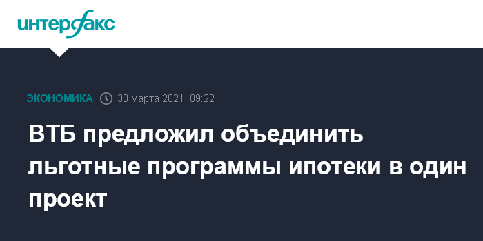 ВТБ предложил объединить льготные программы ипотеки в один проект