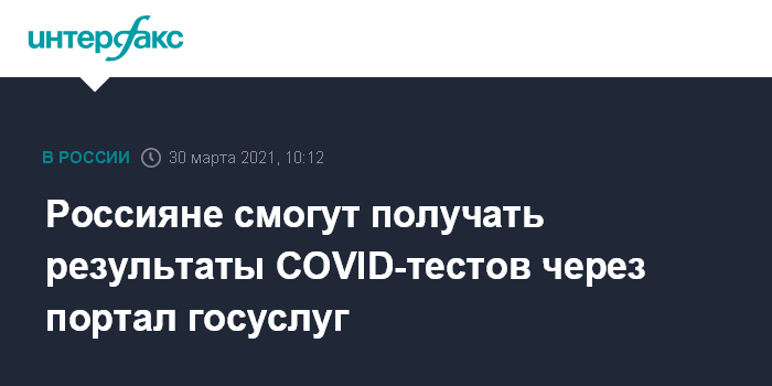 Москва. 30 марта. INTERFAX.RU - Граждане РФ смогут получать результаты тестов на COVID-19 через портал госуслуг, эта информация будет передаваться по защищенным каналам, сообщает пресс-служба правительства.