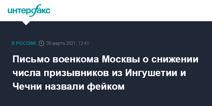 Письмо военкома Москвы о снижении числа призывников из Ингушетии и Чечни назвали фейком