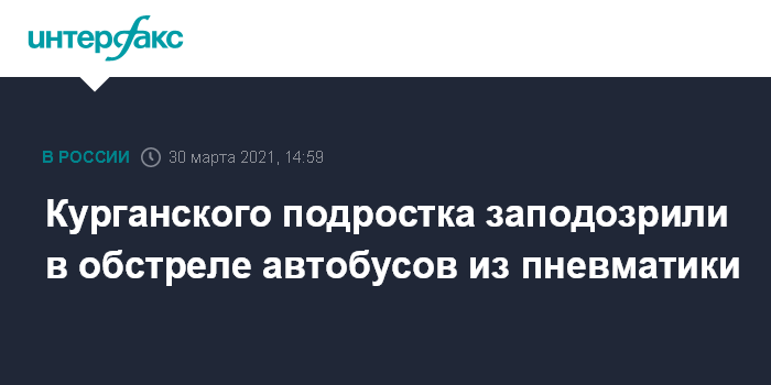 Москва. 30 марта. INTERFAX.RU - Следователи возбудили уголовное дело в отношении подростка, подозреваемого в обстреле автобусов в Кургане. Об этом сообщает во вторник пресс-служба следственного управления СКР по региону.