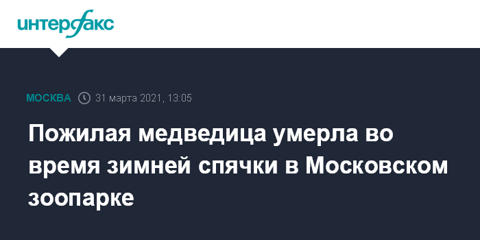 Пожилая медведица умерла во время зимней спячки в Московском зоопарке