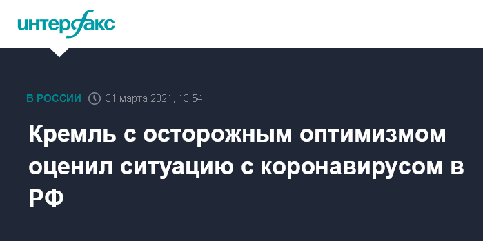 Москва. 31 марта. INTERFAX.RU - В Кремле считают, что позитивная динамика в борьбе с коронавирусом является поводом для осторожного оптимизма, но угроза сохраняется.