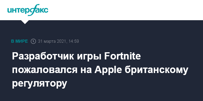 Москва. 31 марта. INTERFAX.RU - Разработчик видеоигр Epic Games, сообщил, что пожаловался в Управление по защите конкуренции и рынкам Великобритании (Competition and Markets Authority, CMA), обвинив американскую Apple в нарушении британского закона о защите конкуренции 1998 года.