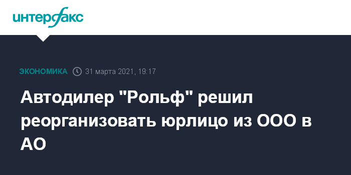 Москва. 31 марта. INTERFAX.RU - Владельцы крупнейшего российского автодилера "Рольф" решили реорганизовать юрлицо, преобразовав его из общества с ограниченной ответственностью (ООО) в акционерное общество (АО).