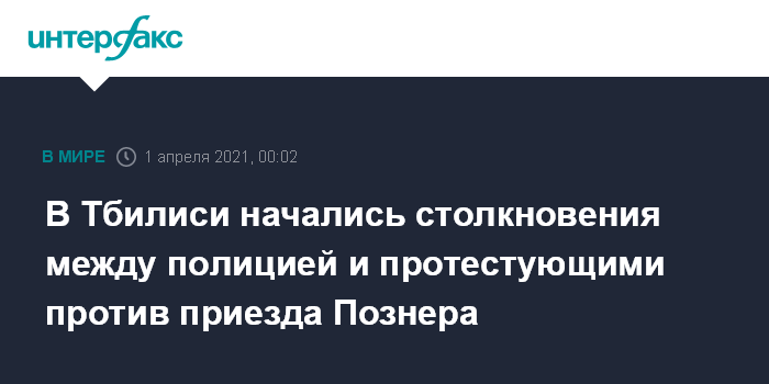 Москва. 1 апреля. INTERFAX.RU - В Тбилиси перед зданием гостиницы, где в среду вечером остановился прибывший из Москвы российский журналист Владимир Познер, начались столкновения между полицией и участниками организованной оппозицией акции протеста, сообщают грузинские СМИ.