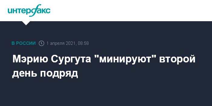 Москва. 1 апреля. INTERFAX.RU - Сотрудники правоохранительных органов второй день подряд обследуют здание администрации Сургута (Ханты-Мансийский автономный округ) после сообщения о якобы заложенном взрывном устройстве, сообщил "Интерфаксу" осведомленный источник.