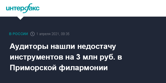 Москва. 1 апреля. INTERFAX.RU - Правоохранительные органы проверят сведения о недостаче музыкальных инструментов в Приморской краевой филармонии во Владивостоке, отсутствие которых выявила контрольно-счетная палата (КСП) региона.