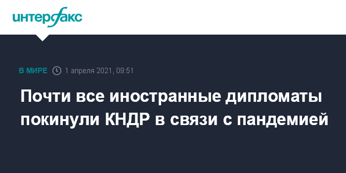 Москва. 1 апреля. INTERFAX.RU - КНДР в связи пандемией покинула значительная часть иностранных дипломатов, включая персонал международных гуманитарных организаций, в стране наблюдается острый дефицит товаров, в том числе лекарств, сообщает посольство РФ в Пхеньяне.