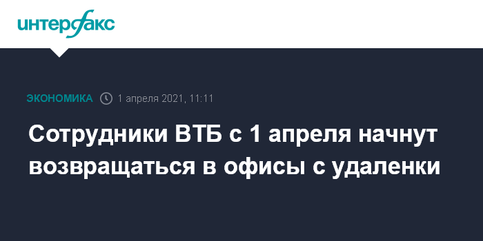 Сотрудники ВТБ с 1 апреля начнут возвращаться в офисы с удаленки