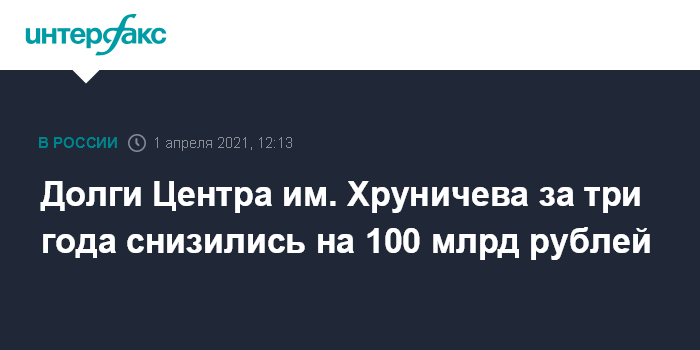 Долги Центра им. Хруничева за три года снизились на 100 млрд рублей