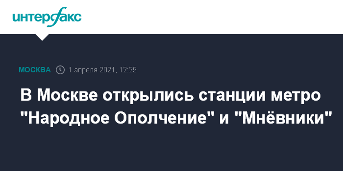 Москва. 1 апреля. INTERFAX.RU - На Большой кольцевой линии Московского метро 1 апреля открылись 11-я и 12-я станции - "Народное ополчение" и "Мнёвники". Теперь в московском метро всего 241 станция (без учета МЦК). В церемонии участвовал мэр Сергей Собянин.
