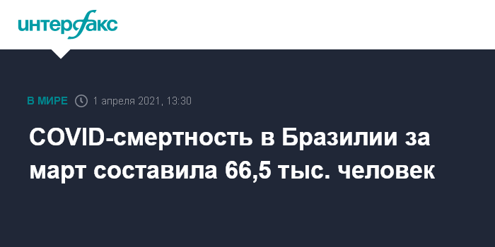 COVID-смертность в Бразилии за март составила 66,5 тыс. человек