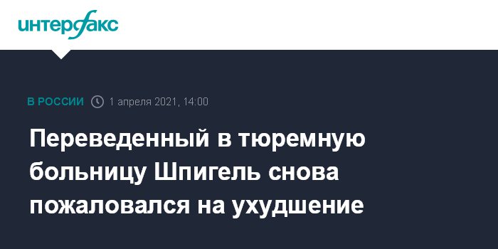 Переведенный в тюремную больницу Шпигель снова пожаловался на ухудшение