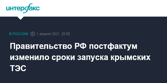 Правительство РФ постфактум изменило сроки запуска крымских ТЭС