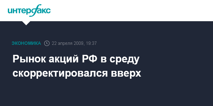 Москва. 22 апреля. INTERFAX.RU - Российский рынок акций в среду скорректировался вверх вместе с мировыми фондовыми площадками, корпоративные отчеты финансовых компаний в США в среду оказались разнополярными, а негатива под занавес торгов добавила упавшая нефть на данных о запасах в США.