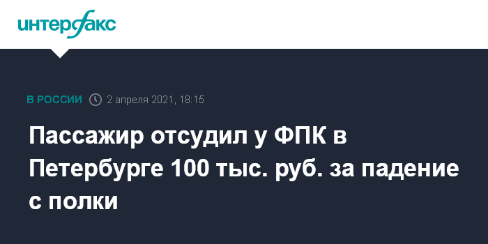 Пассажир отсудил у ФПК в Петербурге 100 тыс. руб. за падение с полки