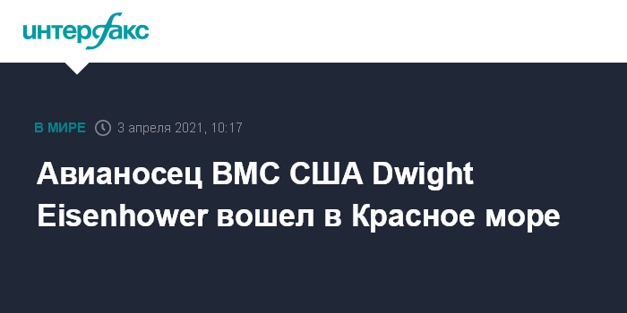 Москва. 3 апреля. INTERFAX.RU - Американский атомный авианосец Dwight Eisenhower ("Дуайт Эйзенхауэр"), пройдя Суэцкий канал, вошел в Красное море, которое входит в зону ответственности Центрального командования США, сообщил египетский информационный сайт Cairo24.