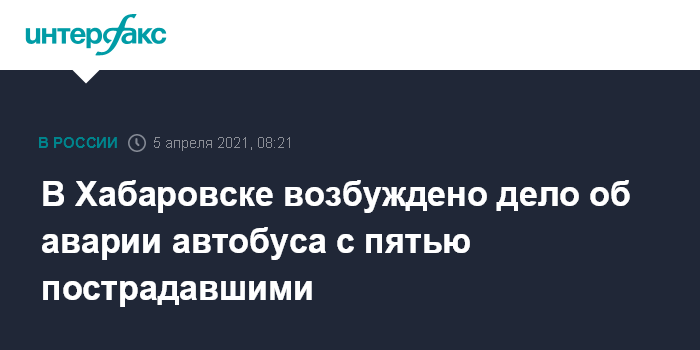 Москва. 5 апреля. INTERFAX.RU - Возбуждено уголовное дело по факту ДТП с пассажирским автобусом, которое случилось утром в минувшее воскресенье в Хабаровске. Дело расследуется по ч. 1 ст. 238 УК (оказание услуг, не отвечающих требованиям безопасности жизни и здоровья потребителей), сообщили в СК по Хабаровскому краю и Еврейской автономной области.