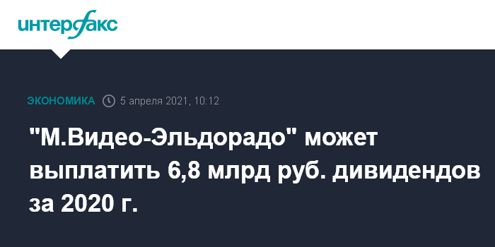"М.Видео-Эльдорадо" может выплатить 6,8 млрд руб. дивидендов за 2020 г.