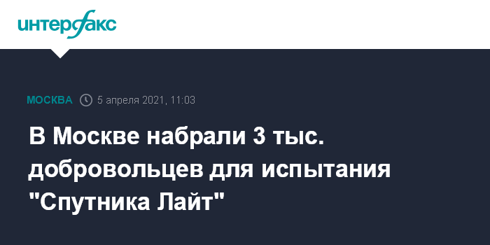 В Москве набрали 3 тыс. добровольцев для испытания "Спутника Лайт"