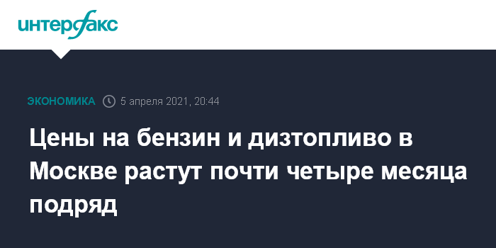 Цены на бензин и дизтопливо в Москве растут почти четыре месяца подряд