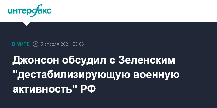 Москва. 5 апреля. INTERFAX.RU - Премьер-министр Великобритании Борис Джонсон обсудил с президентом Украины Владимиром Зеленским данные о передвижениях российских военных близ границы с Украиной. Об этом британский премьер сообщил в своем твиттере.