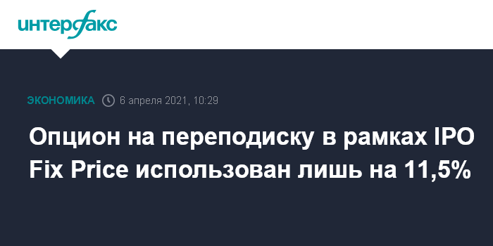 Опцион на переподиску в рамках IPO Fix Price использован лишь на 11,5%