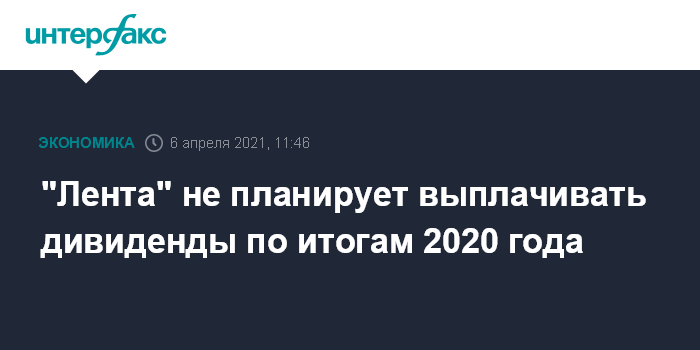 Москва. 6 апреля. INTERFAX.RU - Совет директоров МКПАО "Лента" рекомендовал акционерам не выплачивать дивиденды по итогам 2020 года.