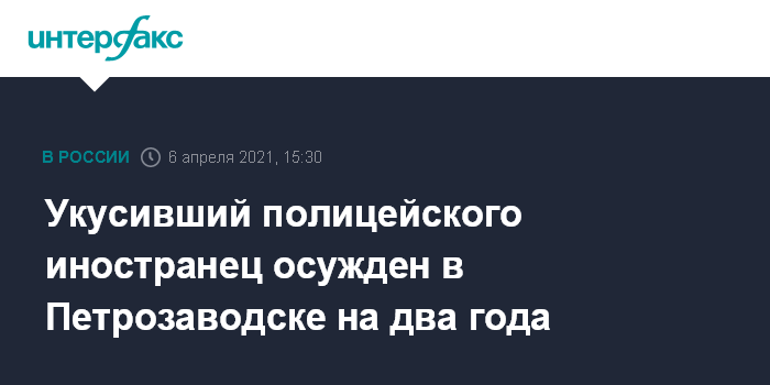 Москва. 6 апреля. INTERFAX.RU - Суд в Карелии вынес обвинительный приговор иностранному гражданину, укусившему сотрудника полиции. Об этом сообщает пресс-служба управления СКР по региону.