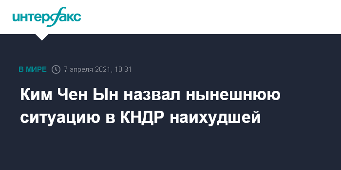 Москва. 7 апреля. INTERFAX.RU - Северокорейский лидер Ким Чен Ын признал, что ситуация в КНДР складывается хуже, чем когда бы то ни было, сообщает Центральное телеграфное агентство Кореи.