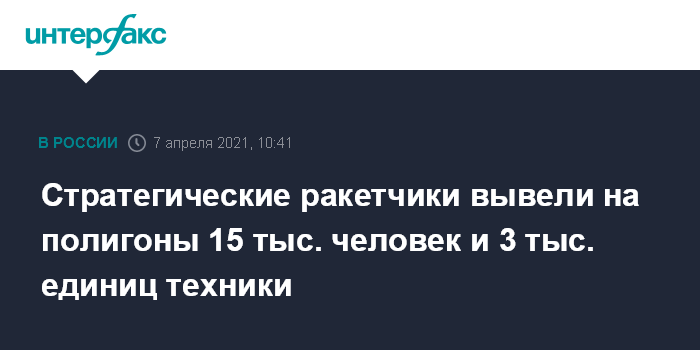 Москва. 7 апреля. INTERFAX.RU - В Ракетных войсках стратегического назначения (РВСН) начались контрольные итоговые проверки более чем в 80 воинских частях, всего к проверкам будет привлечено 15 тыс. военных и 3 тыс. единиц техники, сообщает в среду министерство обороны РФ.