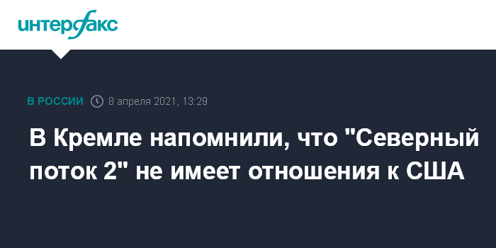 Москва. 8 апреля. INTERFAX.RU - Пресс-секретарь президента РФ Дмитрий Песков заявил, что планы США назначить спецпредставителя для воспрепятствования проекту "Северный поток 2" являются вмешательством во внутренние дела.