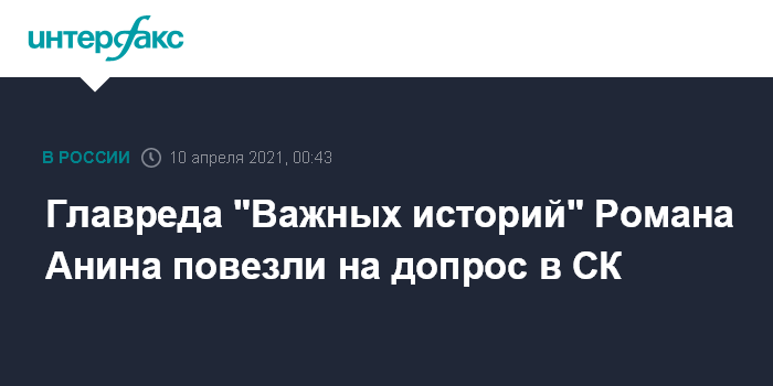 Москва. 10 апреля. INTERFAX.RU - Главного редактора интернет-издания "Важные истории", которое специализируется на журналистских расследованиях, Романа Анина везут на допрос после окончания обыска в его квартире.
