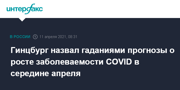 Москва. 11 апреля. INTERFAX.RU - Глава центра им. Гамалеи Александр Гинцбург поставил под сомнение обоснованность прогнозов, согласно которым в РФ заболеваемость коронавирусом резко возрастет в середине апреля.
