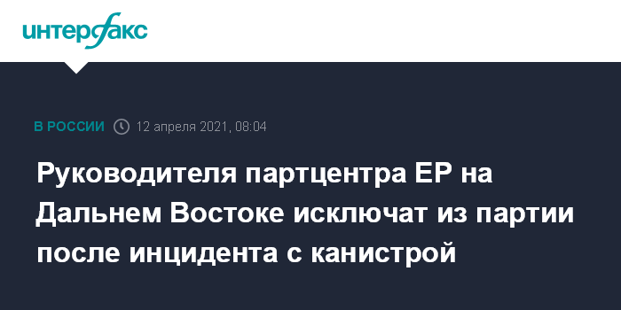 Руководителя партцентра ЕР на Дальнем Востоке исключат из партии после инцидента с канистрой