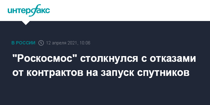 Москва. 12 апреля. INTERFAX.RU - Один из контрагентов "Роскосмоса" в 2020 году отказался от контракта на запуск спутника из-за американских санкций, сообщил в интервью "Интерфаксу" первый замгендиректора госкорпорации по экономике и финансам Максим Овчинников.